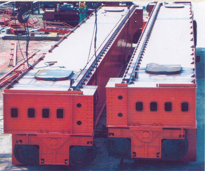 橋架在高架軌道上運(yùn)行的一種橋架型起重機(jī),又稱天車。橋式起重機(jī)的橋架沿鋪設(shè)在兩側(cè)高架上的軌道縱向運(yùn)行,起重小車沿鋪設(shè)在橋架上的軌道橫向運(yùn)行,構(gòu)成一矩形的工作范圍,就可以充分利用橋架下面的空間吊運(yùn)物料,不受地面設(shè)備的阻礙。這種起重機(jī)廣泛用在室內(nèi)外倉(cāng)庫(kù)、廠房、碼頭和露天貯料場(chǎng)等處。
